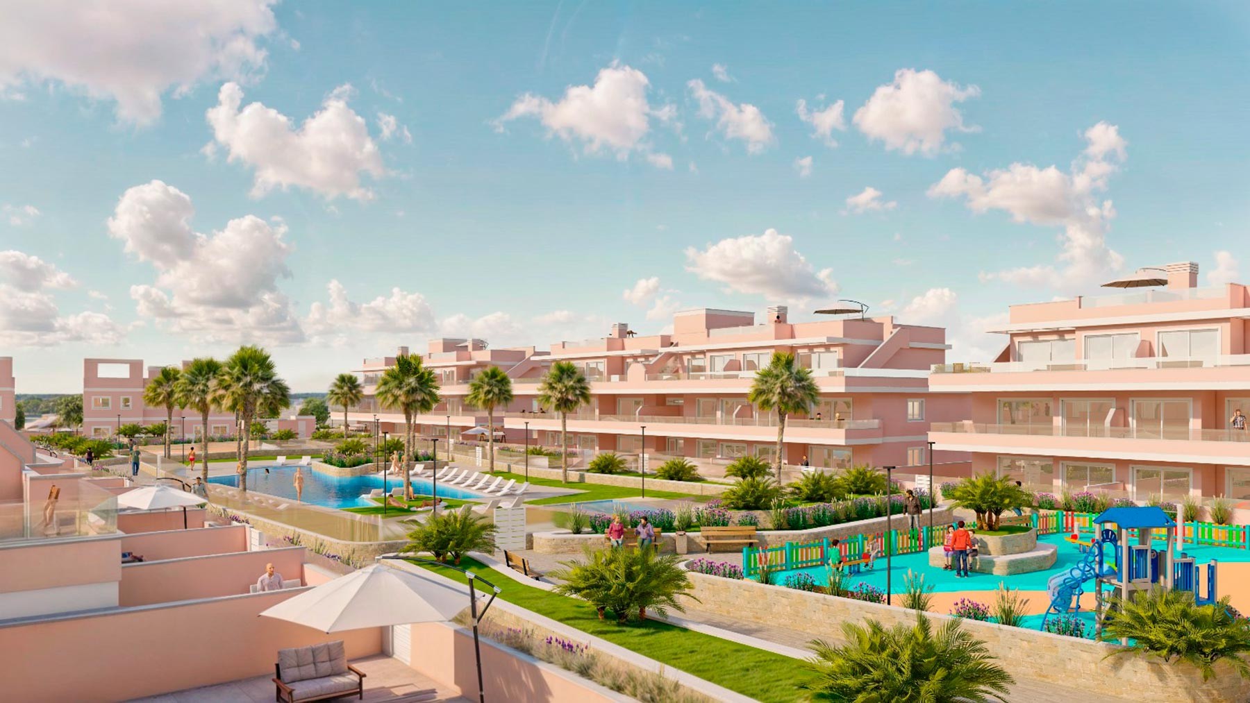 Der Wohnkomplex wurde so konzipiert, dass er das Wohlbefinden seiner Bewohner gewährleistet. Er verfügt über einen spektakulären Gemeinschaftsbereich im Zentrum, der große Gartenflächen, zwei beeindruckende Swimmingpools in modernem Design, einen Entspannungsbereich, in dem Sie die Sonnenuntergänge genießen können, und einen Kinderspielplatz umfasst, der zum Lieblingsplatz der Kleinen wird. Die Häuser sind mit einer Einbauküche und Geräten, kompletten Badezimmern, motorisierten Jalousien und einer Vorinstallation für eine Klimaanlage ausgestattet und garantieren so ein komfortables und effizientes Zuhause.