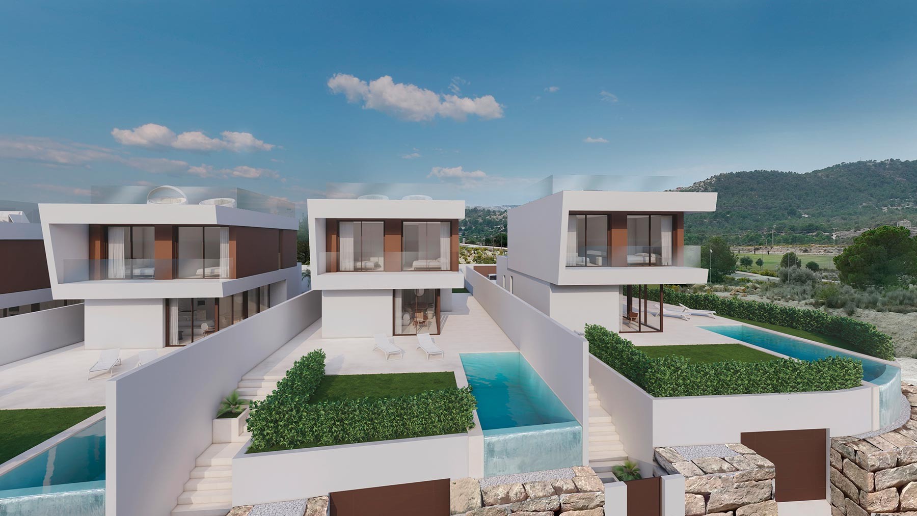 De rymliga tomterna är designade för att få ut det mesta av Medelhavets livsstil, med utomhusområden perfekta för att koppla av vid den privata poolen. Inuti är köken fullt utrustade med avancerade apparater, och badrummen är redo att användas. Dessutom garanterar förinstallationen av luftkonditionering med kanal och elektriska fönsterluckor maximal komfort under hela året, med högkvalitativa ytbehandlingar i varje detalj.